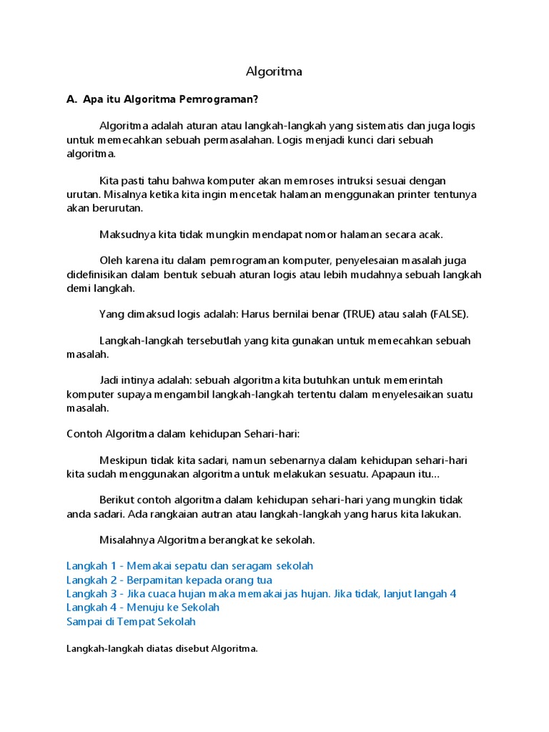 Pengertian Algoritma Pemrograman Dan Contoh