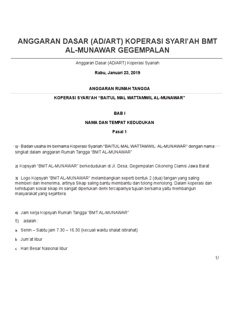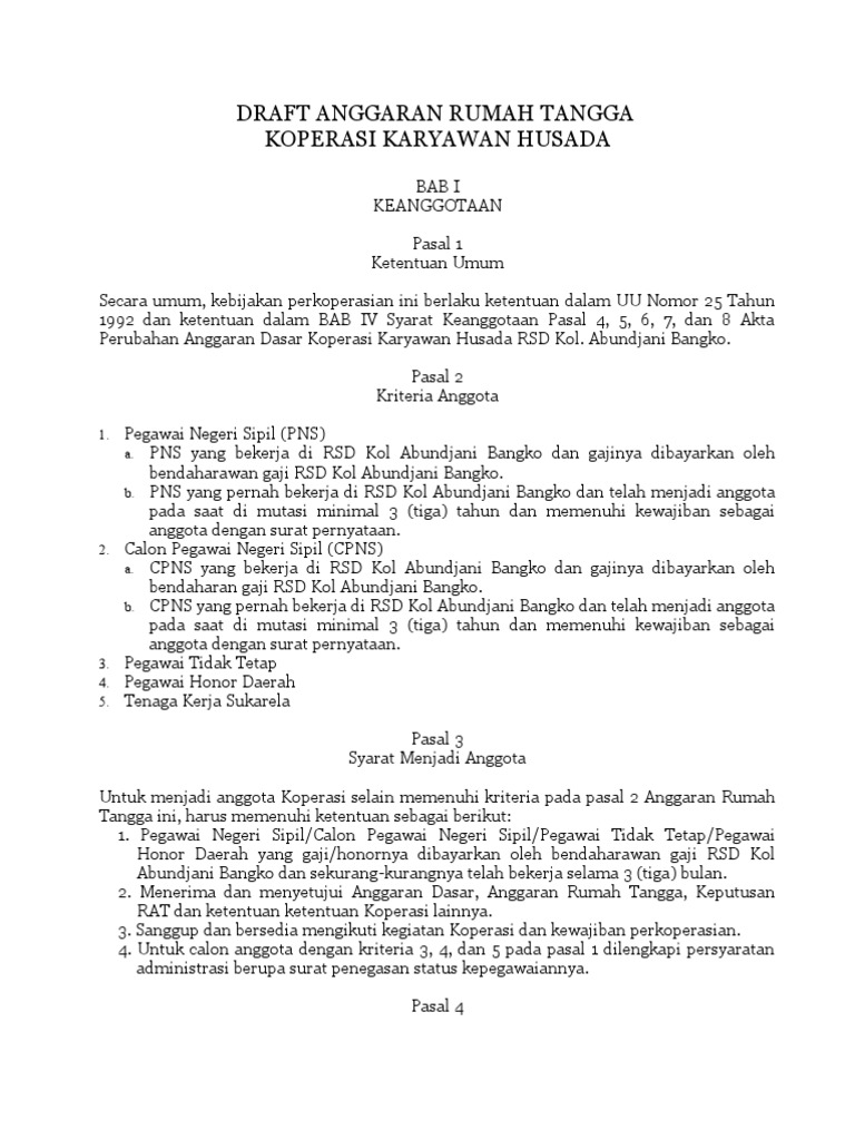 Misalnya tujuan dan kegiatan koperasi pada pasal 5 dapat anda sesuaikan. Sukaresmi rt 05 rw 02 ds. Pasal 39 1 anggota maupun anggota luar biasa yang mencemarkan nama baik dan merugikan. Dalam posting ini saya sertakan contoh anggaran dasar dan anggaran rumah tangga koperasi tetapi perlu diingat organisasi koperasi tidak serta merta bisa mengcopt paste begitu saja secara mentah ada bagian bagain sensitif yang harus diperhatikan misalnya tempat dan atribut organisasi persyaratan anggota dan pembagian shubisa jadi shu dibagi tidak dengan persentasi seperti didalam contoh. 000 seratus ribu rupiah dengan cara pembayaran sekaligus tunai atau diangsur maksimal 5 lima bulan. Koperasi ini berkedudukan di dsn.