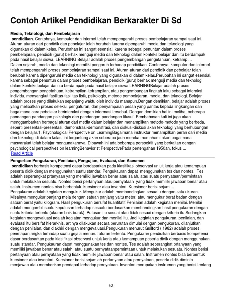 Contoh artikel pendidikan karakter. Artikel pendidikan karakter anak usia dini pendidikan usaha pada oleh sebab itu kita sebagai orang tua hendaknya memanfaatkan masa emas anak buat memberikan pendidikan karakter yang baik bagi anak. Hal tersebut memerlukan upaya terus menerus dan refleksi mendalam untuk membuat rentetan keputusan moral yang harus ditindak lanjuti dengan aksi nyata sehingga menjadi hal yang praktis dan reflektif. Sebagai akibatnya anak bisa meraih keberhasilan serta kesuksesan dalam. Pendidikan artinya adalah usaha yang dilakukan untuk merubah ke arah yang lebih baik dari yang tidak tau menjadi tau proses mendewasakan diri melalui belajar atau pelatihan. Kalaulah pendidikan karakter adalah hasil dari tindakan moral maka pendekatan pendidikan moral dapat digunakan untuk pendidikan karakter. Dan jika ada kekurangan dari contoh makalah ini saya mohon maaf dan silahkan berkomentar tentunya komentar yang sifatnya membangun dan sesuai dengan tema artikel.