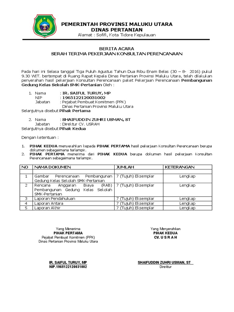 6000 enam riburupiah masing masing rangkap mempunyai kekuatan hukum yang sama. Dokumen kontrak bab iv syarat syarat umum kontrak pasal 48. Demikian berita acara ini dibuat pada waktu dan di tempat sebagaimana disebutkan pada bagian awal berita acara ini. Surat permohonan fho dari penyedia jasa. Berita acara serah terima akhir pekerjaan proyek. Berita acara serah terima jabatan pada bagian ini merupakan pembuktian secara formal adanya pelimpahan jabatan dari pihak pertama sebagai yang menyerahkan kepada pihak kedua sebagai yang menerima dengan detail berisi tugas kewajiban kewenangan dan juga tanggung jawab yang didokumentasikan dan diarsipkan.
