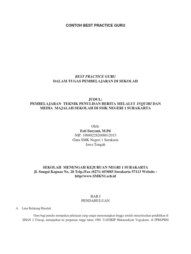 Contoh best practice guru 2015. Caracontoh penulisan best practice pemilihan guru sma berprestasi nasional 2016 klik link ini untuk menonton video pbm yang saya sertakan dalam pemilihan guru sma berprestasi tingkat nasional 2016 video pbm geografi jidint. Dalam tugas pembelajaran di sekolah. Contoh best practice guru sma. Sekolah menengah kejuruan negeri 3. Best practice guru. Home best practice guru best practice guru.