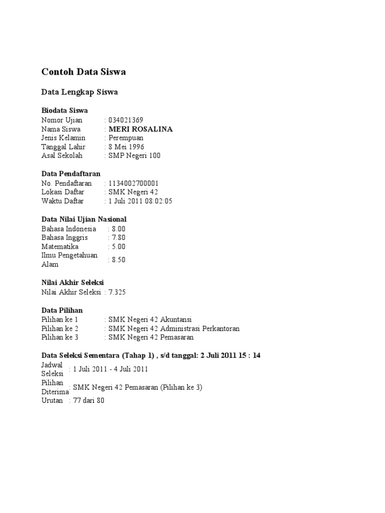 Contoh Biodata Diri Pribadi Siswa Melamar Pekerjaan