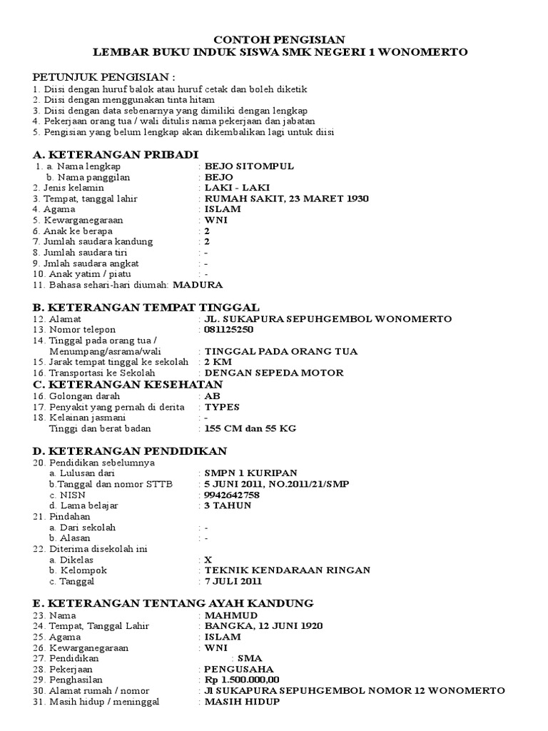 Lembaran buku induk pegawai. Contoh lembar buku induk siswa smk negeri 1 wonomerto.