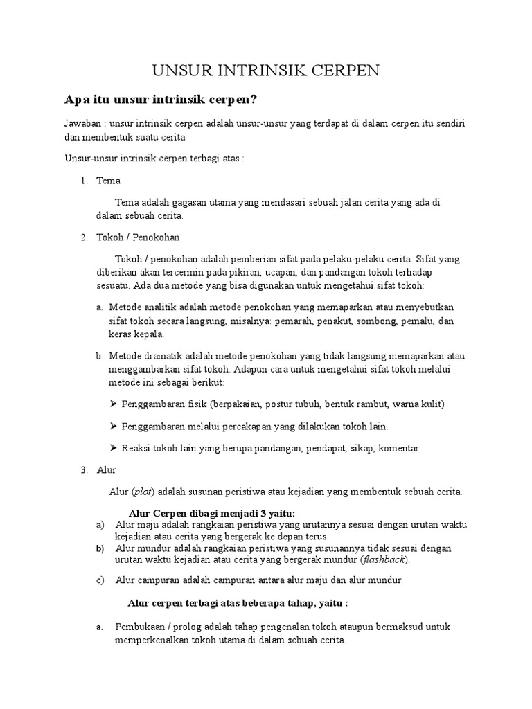 Contoh cerpen dan unsur intrinsiknya 1. Contoh cerpen dan unsur intrinsiknya cerita pendek atau yang sering disingkat dengan cerpen adalah suatu bentuk prosa naratif fiktif berisi cerita yang lebih padat dan langsung pada tujuancerita pendek sendiri berasal dari anekdot yaitu sebuah situasi yang digambarkan secara singkat dan cepat tiba pada tujuannya.