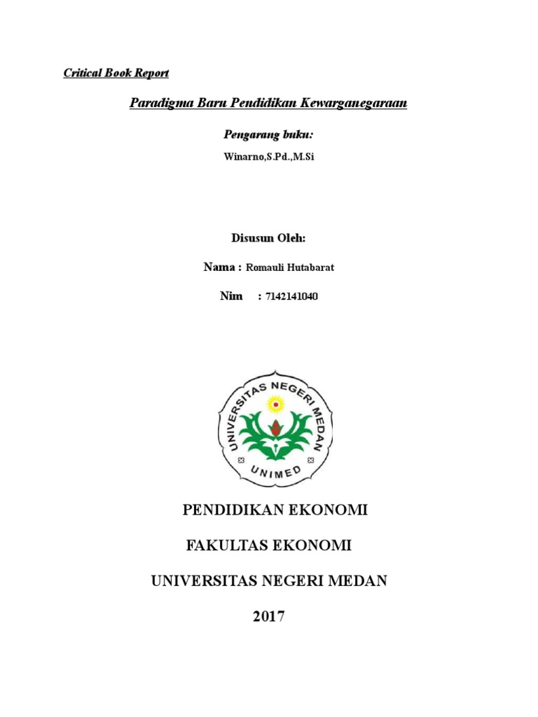 Wahyudi n i m. 05311244 kelas a kbk program studi pendidikan administrasi perkantoran. Untuk memenuhi tugas matakuliah ips kelas tinggi. Contoh critical book report critical book report. Pendahuluan mata kuliah profesi kependidikan merupakan salah satu mata kuliah dasar keahlian yang memberikan bekal pengetahuan dan keterampilan pada calon pendidik untuk melaksanakan tugas sebagai pengajar profesional. Critical book reportreview critical book reportreview cbr adalah karya ilmiah yang terdiri dari 1000 2000 kata yang disusun berdasarkan hasil critical isi sebuah buku.