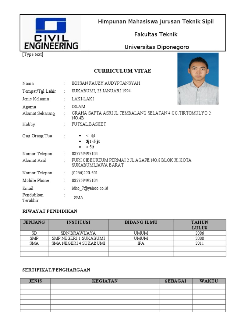 Contoh cv teknik sipil adalah gambar curriculum vitae berdefinisi tinggi dan memiliki ukuran 768x1024. Jika anda mencari contoh curriculum vitae teknik sipil maka anda berada di tempat yang tepatblog contohwir memiliki banyak koleksi gambar seperti contoh curriculum vitae teknik sipil gambar ini tersedia dalam format jpg png gif. Membuat cv itu sebenarnya tidak sulit namun membuat cv yang menarik dan kreatif menjadi suatu tantangan tersendiri. Contoh surat lamaran kerja adalah suatu hal yang sangat dibutuhkan oleh para orang yang sedang mencari pekerjaan yang sesuai dengan keinginannya. Install font yang digunakan. Konsultan kontraktor konstruksi bangunan.