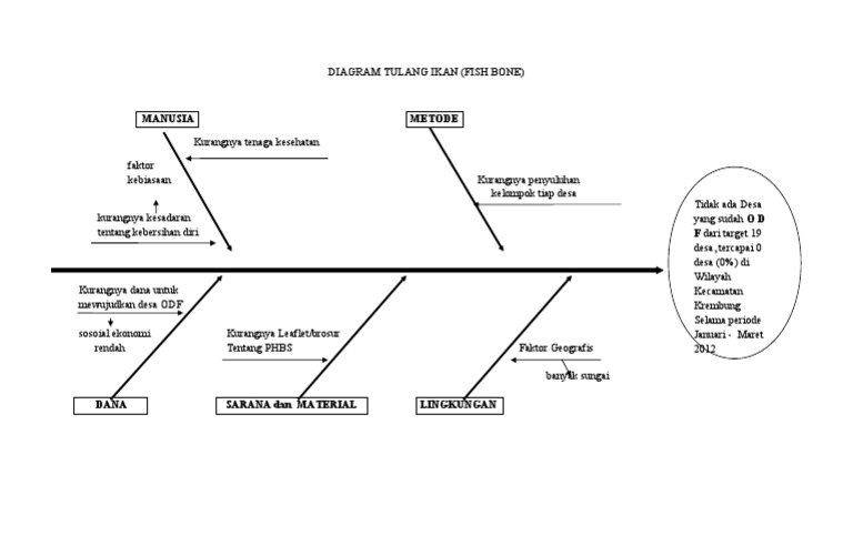 Dikatakan diagram fishbone tulang ikan karena memang berbentuk mirip dengan tulang ikan yang moncong kepalanya menghadap ke kanan. Banjir kali ini tak kalah hebatnya dibandingkan banjir besar tahun 2007 lalu. Fishbone diagram tahap tindakan dan perbaikan lebih mudah dilakukan setelah masalah diidentifikasi dan akar penyebab masalahnya sudah diketahui yaitu dengan cara menggunakan diagram tulang ikan. Kaoru ishikawa dari universitas tokyo di tahun 1953. Kaoru ishikawa ilmuwan kelahiran 1915 di tokyo jepang yang juga alumni teknik kimia universitas tokyokarena itulah sering juga diagram tulang ikan ini disebut. Masalah banjir dalam diagram tulang ikan.