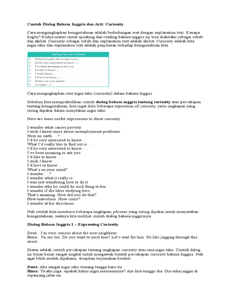 Contoh dialog singkat bahasa inggris. Dan berikut inspirilo sajikan beberapa contoh conversation percakapan dalam bahasa inggris dalam bentuk dialog singkat dan artinya atau terjemahannya. Dalam bahasa inggris hal tersebut disebut expressing of suggestion. 5 contoh percakapan bahasa inggris singkat dalam interview kerja hai sahabat sbi yang super dalam tes masuk kerja kita sering menemui tahapan interview dimana kita akan diberikan bermacam macam jenis pertanyaan yang bertujuan untuk menguji skill dan kemampuan sebagai seorang karyawan yang layak. Dialog bahasa inggris tentang ramadhan lengkap dengan terjemahan dan pembahasan materi listening skill simple past tense 10 kumpulan materi listening bahasa inggris lengkap dengan contoh dialog singkat listening skill advice suggestion kumpulan materi listening bahasa inggris lengkap dengan contoh dialog. Contoh dialog bahasa inggris expressing of suggestion. Berisi jenis percakapan 2 orang 3 orang 4 orang atau lebih dalam berbagai situasi dan tema.