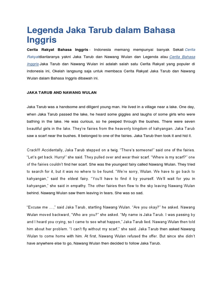 Hari ini bahasainggrisokecom akan mengajak kalian untuk membahas soal yang ada dalam artikel ini dan nantinya bisa kalian jadikan referensi dalam menjawab soal yang di sekolah. Untuk itu simak baik baik cerita binatang dalam bahasa inggris dibwah ini. Kumpulan contoh naskah drama dalam bahasa inggris 6 orang terlengkap sahabat sbi sebelumnya saya telah memberikan contoh naskah drama dalam bahasa inggris untuk 8 orang nah pada kesempatan kali ini saya akan memberikan contoh naskah ada sebuah drama untuk 6 orang yang juga dibuat oleh sebuah kelompok maahasiswa dari pendidikan bahasa dan sastra inggris di universitas lampung. Dongeng berikut berjudul the legend of tanjung menangis merupakan dongeng dari halmahera. Contoh cerita rakyat dalam bahasa inggris cerita keong mas golden snail. Kali ini kbi akan memberikan beberapa contoh cerita rakyat dalam bahasa inggris beserta artinya.