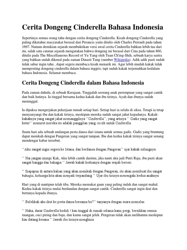 Sebelum kita melihat berbagai koleksi dongeng yang ada lebih dulu kita akan membaca sebuah dongeng yang diceritakan dalam bahasa inggris. 10 contoh cerita binatang dalam bahasa inggris dan artinya terbaru cerita binatang dalam bahasa inggris yang biasa termasuk dalam narative text sangat membantu sahabat sahabat sbi untuk menguasai skill dalam bahasa inggris khususnya reading skill. Cerita dongeng cinderella dalam bahasa inggris beserta artinya dikupas lengkap oleh ibi. Once there was a couple living in a royal residence. Karena hal tersebut dapat menumbuhkan rasa cinta terhadap tanah air ini. Sebelumnya saya sudah membagikan beberapa cerita cerita bahasa inggris asli indonesia.