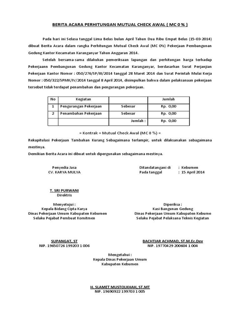 Contoh format mc 0 proyek. Contoh format mc 0 proyek posted. Dinas pekerjaan umum bina marga cipta karya. Perubahan juga dapat terjadi sebagai proyek berlangsung untuk memungkinkan anggota tim untuk memahami gambaran proyek daripada khawatir tentang bagiannya saja dan di sini semua anggota. Contoh laporan mc 0 proyek. Pada nama paket pekerjaan dan alamat ini merupakan hal penting sebagai pengenal atau identitas suatu proyek dalam pembuatan mc 0 kita sehingga tidak mungkin suatu proyek tanpa memiliki nama. Nama jabatan perusahaan 2.