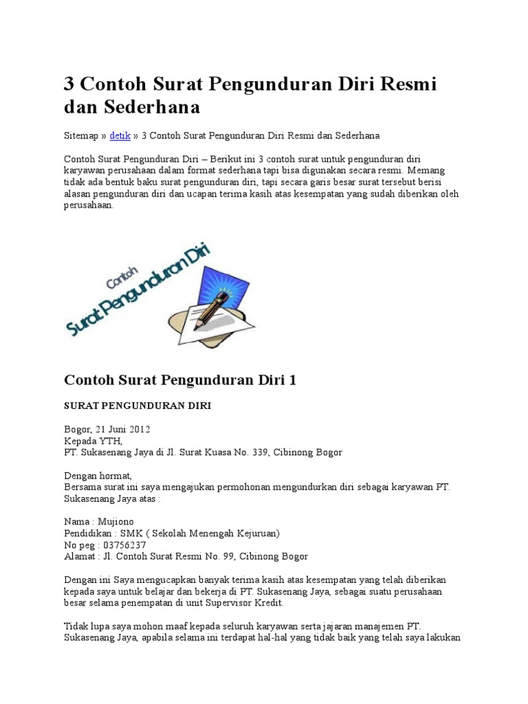 Contoh surat resign guru dari sekolah. Contoh surat pengunduran diri berikut ini 3 contoh surat untuk pengunduran diri karyawan perusahaan dalam format sederhana tapi bisa digunakan secara resmi. Apakah anda bingung dalam membuat surat resign yang sopan dan baik tenang saja. Namun terkadang dikarenakan berbagai alasan seseoran harus dan terpaksa untuk mengundurkan diri dari suatu kelompok. Contoh dan format surat pengunduran diri resign sebelumnya saya sudah menjelaskan mengenai surat lamaran kerja yang baik dan benarnah pada kesempatan kali ini saya akan menjelaskan mengenai surat pengunduran diri atau biasa dikenal dengan resign dari pekerjaan. Contoh surat pengunduran diri bekerja di perusahaan atau instansi tertentu memang menuntut seseorang untuk bekerja secara professional.