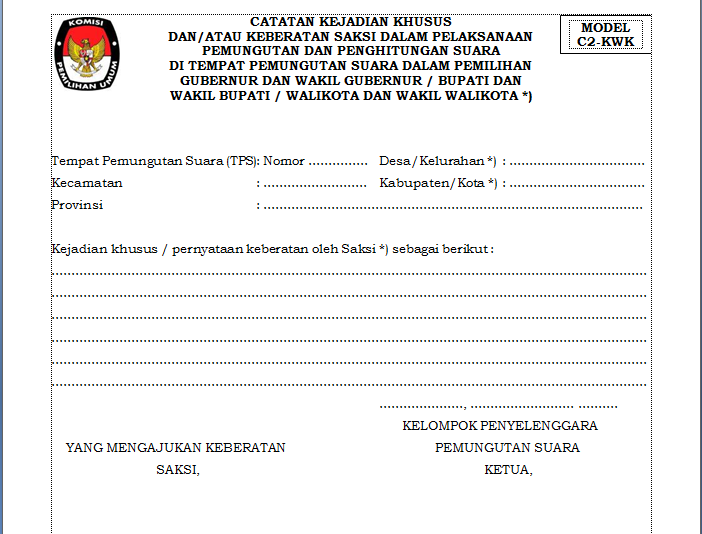 Model c kwkkpu berita acara pemungutan dan penghitungan suara pemilihan umum di tempat pemungutan suara. Anang asikin 44360 views.