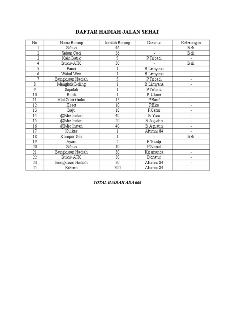 Contoh hadiah doorprize murah meriah. Supaya momen lomba yang telah diikuti selalu terkenang ketika melihat hadiah yang telah diterima. Biar memori yang ada bisa menyinari malam malamnya. Sebagai bentuk perayaan masyarakat terhadap bulan kemerdekaan. Untuk itu banyak hadiah maupun souvenir yang dibagikan oleh perusahaan maupun penyelenggara kegiatan lomba agustusan di desa desa. Banyak lomba dan perhelatan yang diadakan baik secara sederhana maupun besar besaran. Daripada khawatir membeli hadiah yang dirasa membosankan pilihan kado natal unik dan sedikit nyeleneh bisa jadi lebih berkesan loh.
