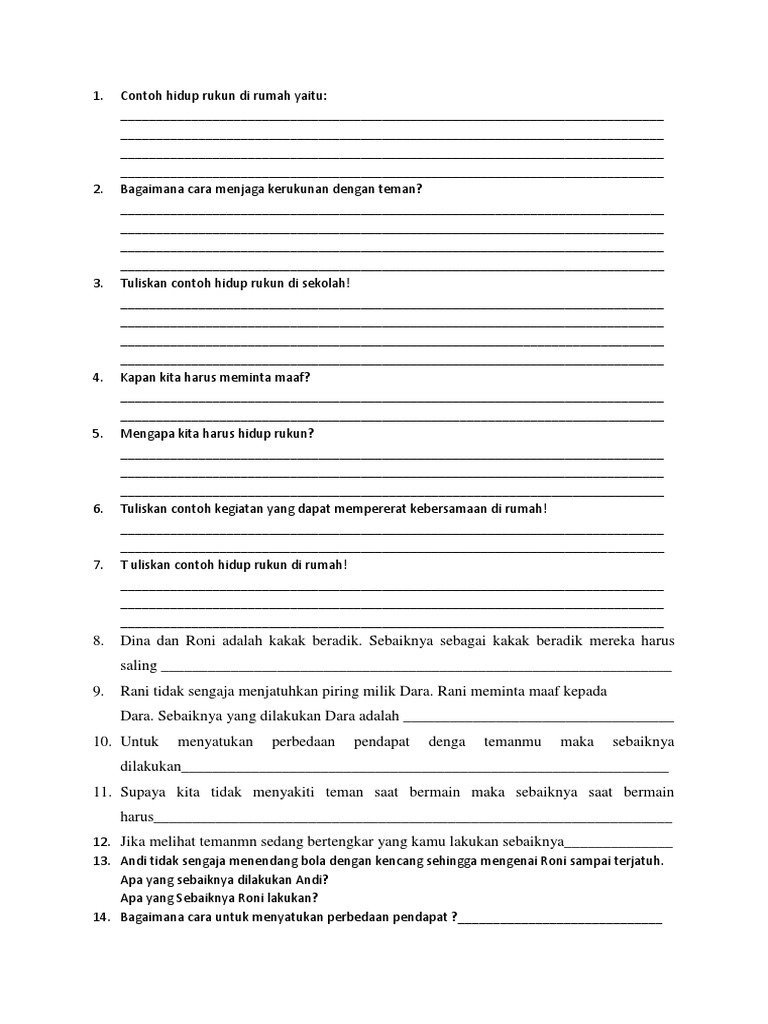 Contoh hidup rukun di sekolah. Contoh hidup rukun di sekolah. Dan tidak memandang sebuah perbedaan meski memiliki latar belakang yang beragam sekalipun seperti agama suku kebiasaan pendapat prinsip ide dan lain sebagainyahidup rukun ini harus diterapkan pada semua. Contoh hidup rukun di masyarakat. Contoh hidup rukun di rumah. Hidup rukun memang wajib diterapkan dimana saja dan kapan saja karena sebagai makhluk sosial maka setiap orang tidak akan dapat hidup sendirian dan pasti membutuhkan bantuan dari orang lain. Menghormati orang tua tidak bertengkar dengan saudara bekerja sama membersihkan rumah makan bersama berbagi cerita keseharian berbagi tugas dalam segala hal dan lain sebagainya.
