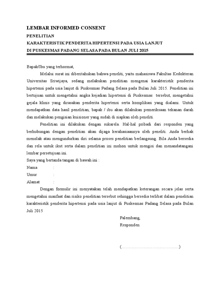 Contoh informed consent penelitian skripsi. Contoh abstrak penelitian personal hygiene. Berikut ini adalah download jurnal gratis yang merupakan kumpulan file dari berbagi sumber tentang contoh informed consent penelitian kualitatif yang bisa bapakibu gunakan dan diunduh secara gratis dengan menekan tombol download biru dibawah ini. Persetujuan informed consent menjadi responden. Berikut ini adalah skripsi contoh jurnal ilmiah yang merupakan kumpulan file dari berbagi sumber wallpaper tentang informed consent skripsi yang bisa bapakibu gunakan dan diunduh secara gratis dengan menekan tombol download biru dibawah ini. Blog ini memuat contoh karya ilmiah yang bermanfaat untuk membantu mempermudah anda dalam penyusunan skripsi semoga bermanfaat monday 2 november 2015. Informed consent saya adalah mahasisiwi fakultas kedokteran universitas lampung yang bernama hanifah rahmania.
