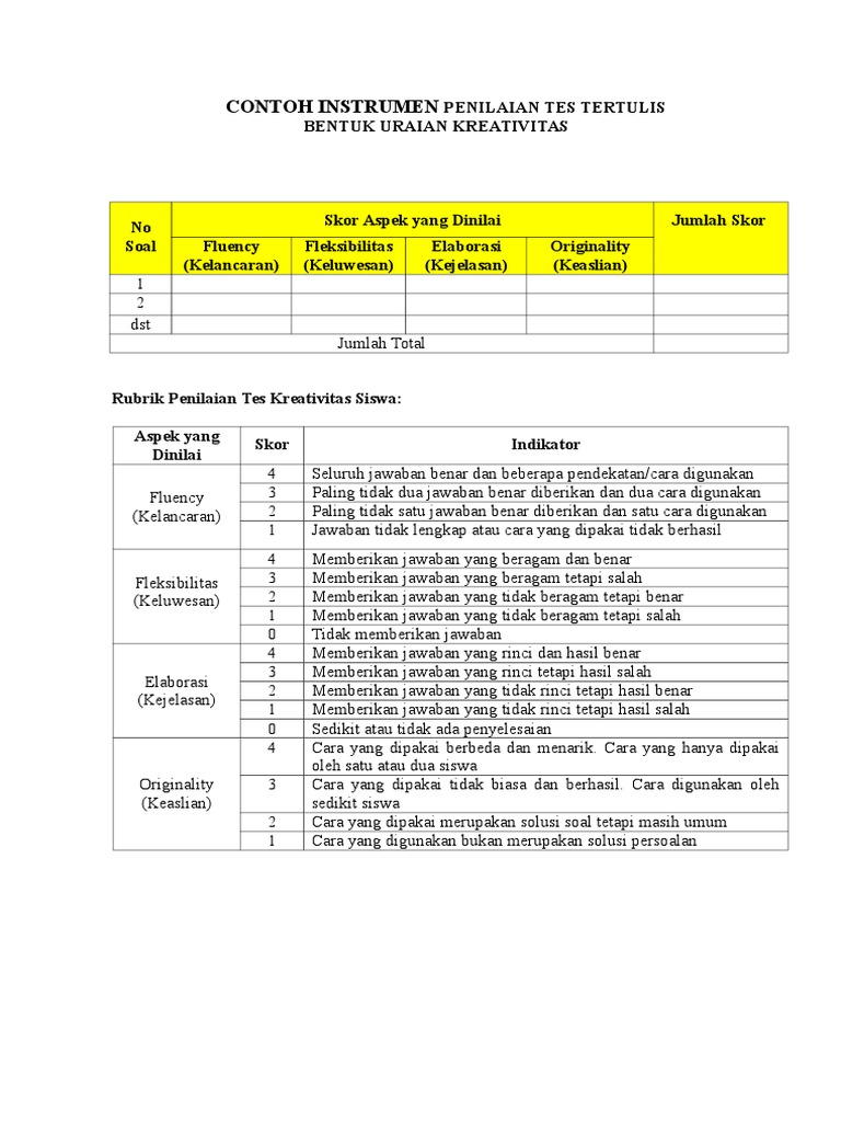 Contoh instrumen penilaian otentik. Contoh penilaian tes performance atau kinerja akan diberikan pada bab implementasi pada bab selanjutnya. Penilaian otentik atau autentic assessment adalah sebuah pengukuran yang mewakilkan seluruh nilai yang benar melekat pada objek yang dinilai dalam hal kurikulum 2013 objek penilaian tidak lain adalah peserta didik. Penilaian tidak hanya pada level kd tetapi juga ki dan skl. Pada kurikulum 2013 pendidik dalam hal ini guru diharapkan dapat melakukan sebuah penilaian otentik dalam mengukur hasil belajar peserta didik dalam empat. Proses evaluasi penilaian merupakan bagian dari serangkaian proses pembelajaran yang biasanya dilaksanakan diakhir pembelajaran. Penilaian otentik juga menekankan kemampuan peserta didik untuk mendemonstrasikan pengetahuan yang dimiliki secara nyata dan bermakna.