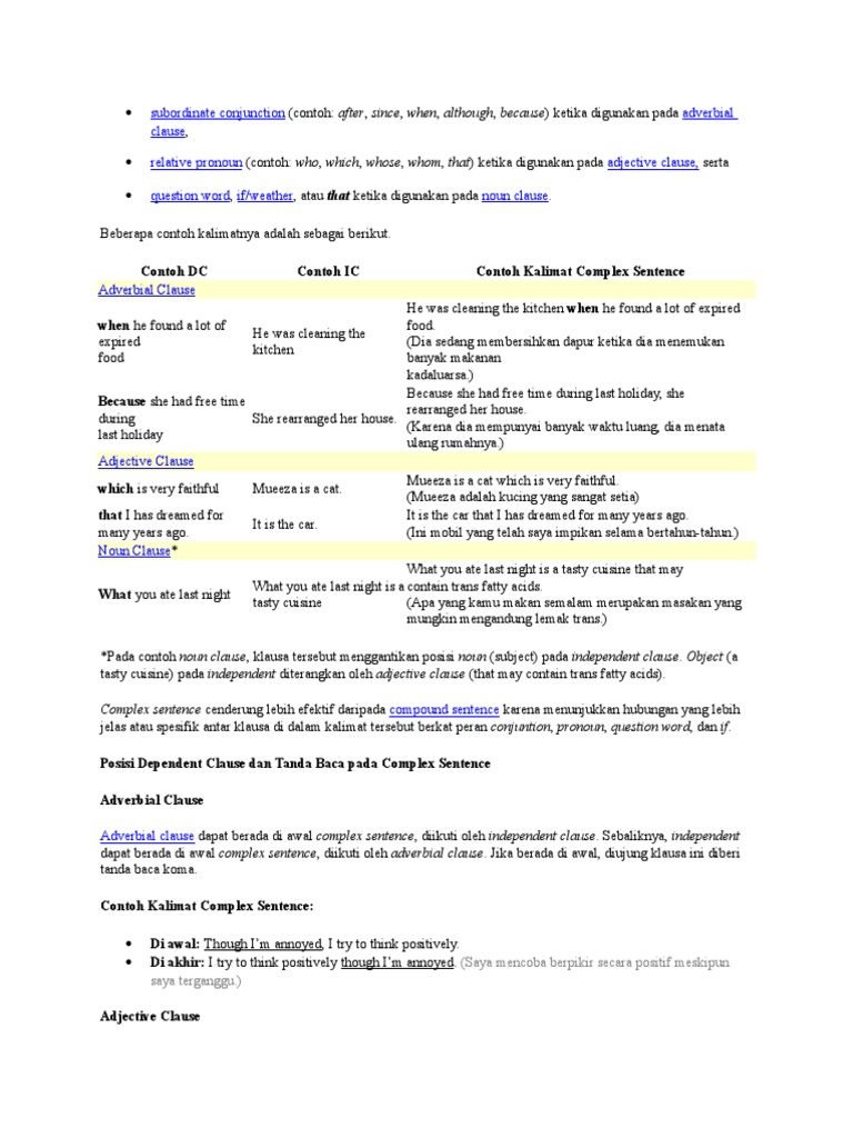 And i need to re watch it again. Compound complex sentences merupakan perpaduan antara compound sentence dan juga complex sentence. Because she had free time during last holiday adverbial clause. Saya akan menghubungimu setelah saya mendapat berita itu kalimat i will give you a call merupakan kalimat independent clause ic yang meskipun tidak diikuti kalimat berikutnya masih bisa diketahui maknanya namun hal ini berbeda dengan kalimat after i get the news yang merupakan kalimat dependent clause dc. Complex sentence merupakan tipe kalimat yang terdiri dari satu independent clause klausa yang bisa berdiri sendiri dan satu atau lebih dependent clause klausa yang tidak bisa berdiri sendiri. Contoh kalimat complex sentence dalam bahasa inggris dan artinya.