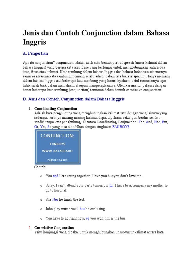 I learn fast and carefully. For and nor but or yet dan so fanboys. Sekilas tentang conjunction atau kata hubung dalam bahasa inggris merupakan suatu bentuk kata hubung yang digunakan untuk menghubungkan beberapa kata atau kalimat dalam bahasa inggris. Kata frasa atau klausa yang dihubungkan haruslah sejajar atau memiliki struktur gramatikal yang sama contohnya. Coordinate conjunction terdiri dari. Correlative conjunction adalah kata penghubung yang digunakan berpasangan untuk menunjukkan hubungan antara dua kata frasa phrase atau klausa clause element kalimat yang dihubungkan biasanya bersifat parallel kedudukannya sejajar secara struktur garamatikal.