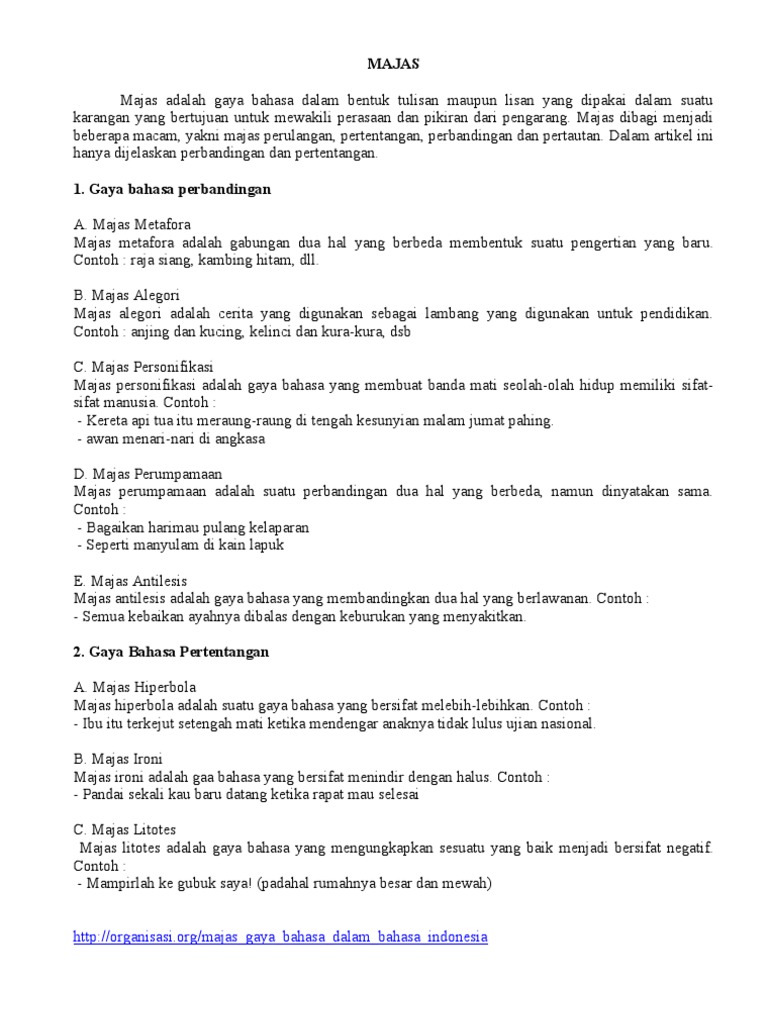 Majas ini membuat akan meninggalkan kesan kuat pada pembaca dan pendengarnya sehingga dapat menarik perhatian. Majas merupakan salah satu gaya bahasa dalam bahasa indonesia yang biasa di gunakan untuk menceritakan atau menggambarkan sesuatu dengan lebih imaginatif. Kali ini kita akan membahas arti dan contoh kalimat majas personifikasi hiperbola litotes ironi metafora. Agar kita lebih memahami gaya bahasa hiperbola kita perlu memperhatikan contoh penggunaannya.