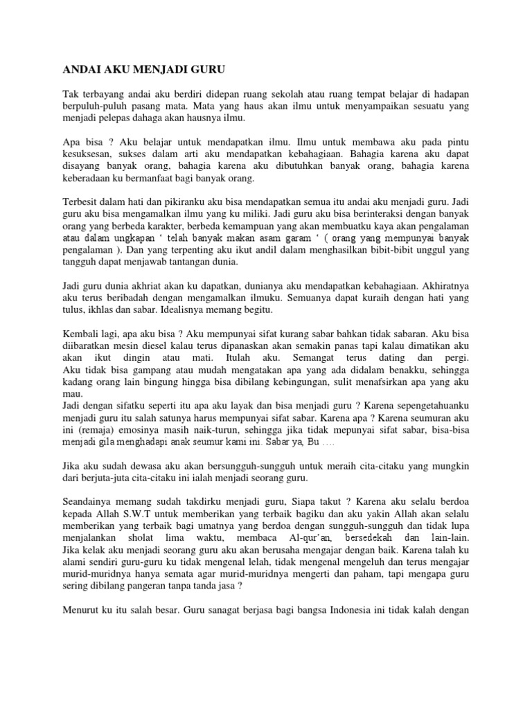 Contoh karangan cita citaku menjadi guru. My future dream is become a teacher. Kali ini admin menulis contoh karangan cita cita saya menjadi guru. Cita citaku jadi ahli biologi adalah i want to be a biologist. Di april 10 2018. Perbedaan puisi syair dan gurindam. Setiap anak memiliki mimpi ada yang memiliki mimpi menjadi guru dokter polisi maupun mimpi yang lainnya yang memiliki satu tujuan untuk membantu orang lain dan juga masyarakat.