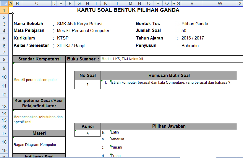 Download contoh kartu soal format microsoft word doc ok dibagian bawah ini kami berikan formatnya untuk anda gunakan. Terlebih dahulu memahami kata kerja ranah kognitif cl c6. Nah sebelum anda melihat lebih lanjut tentang contoh kisi kisi kartu soal uraian dan pilihan ganda pembuatan soal hots k13. Selain dari itu kamipun merekomendasikan anda beberapa pembahasan terkait diantaranya yaitu seperti. Diharapkan format telaah soal pg pilihan ganda ini merupakan salah referensi yang baik dan benar sesuai harapan anda bisa digunakan untuk contoh format doc download kisi kisi microsoft office word soal pilihan ganda dengan demikian file tersebut bisa memenuhi dan mengakhiri pencarian. Nah sebelum anda melihat lebih lanjut tentang contoh kisi kisi kartu soal uraian dan pilihan ganda pembuatan soal hots k13.