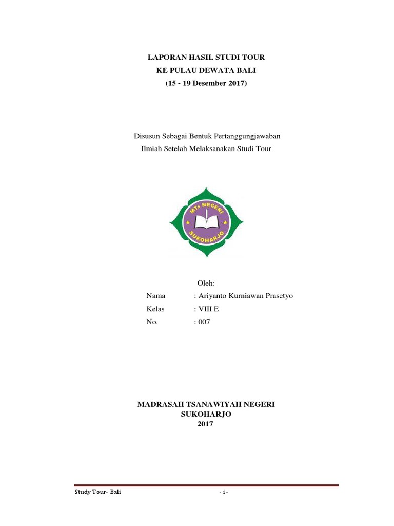 Bali merupakan salah satu objek yang menarik yang ada di indonesiabali memiliki beberapa objek wisata dan beragam budayadari beberapa objek tersebut kami mengambil tujuh objek dalam penyusunan karya tulis inioleh karena ituuntuk mempermudah penyusunan karya tulis ini kami merumuskan sebagai berikut. 19621008 1988031011 kata pengantar. Untuk itu penulis mengucapkan terimakasih pada. Karya tulis tulis yang berjudul perjalanan study tour bali ini telah disetujui dan disahkan pada juli 2012 untuk memenuhi tugas akhir semester genap bahasa indonesia. Dalam penyusunan karya tulis ini penulis tidak akan mampu jika melakukanya sendiri. Kami sadar bahwa dalam penulisan laporan hasil studi wisata ke pulau bali ini tentunya banyak kekurangan dan kesalahan.