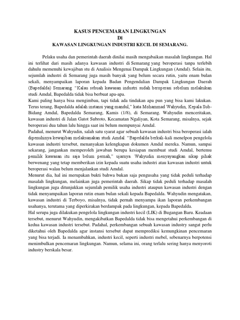 Pengertian macam dan contoh pencemaran lingkungan beserta cara penanggulangannya lengkap pencemaran lingkungan tidak baik bagi kehidupan manusia tidak terkecuali hewan dan tumbuhan karna jika lingkungan sudah tercemar akan menggangu habitat makhluk hidup akan berdampak pada populasi makhluk hidup itu sendiri. 31 penyelesaian kasus pencemaran dan kerusakan lingkungan hidup oleh dinas lingkungan hidup di kota semarang data dinas lingkungan hidup dlh kota semarang tahun 2017 sampai dengan bulan september jumlah kasus lingkungan hidup yang telah dilaporkan sebanyak 40.