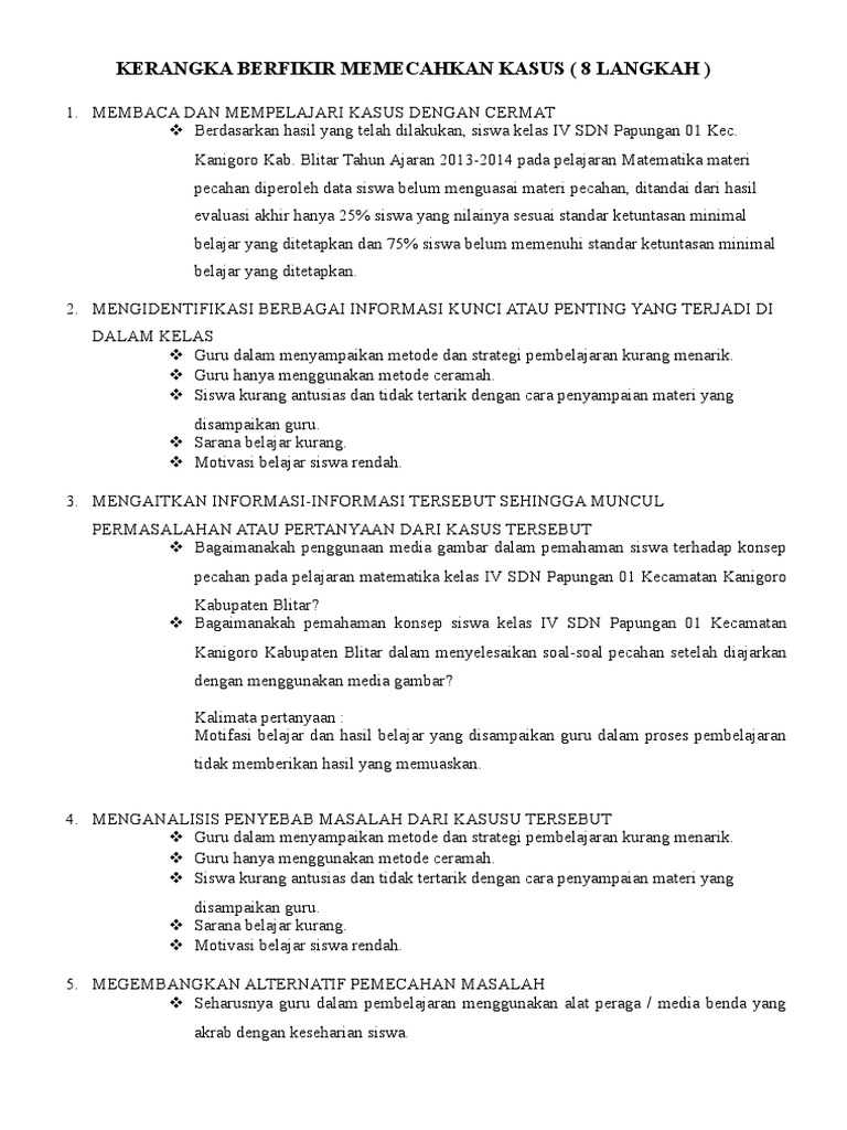 Contoh kasus tap dan pemecahannya. Contoh soal tap idik4500 kasus pembelajaran ipa di sd kasus pembelajaran ipa sd. Tap merupakan serangkaian tugas berbentuk permasalahan kasus kasus atau pertanyaan yang diangkat dari masalah nyata pembelajaran bidang studibidang pengembangan yang harus dipecahkan oleh guru. Seluruh siswa sudah masuk kelas dan tidak lama kemudian bu titi masuk kelas. Bu is menjelaskan perkembangan transportasi serta menyebutkan jenis transportasi masa lalu dan masa kini. Contoh soal kasus pembelajaran bahasa indonesia kelas iii tap bu ema guru kelas iii sdn karang mulya ingin mencoba p endekatan terpadu lintas kurikulumlintas bidang studi yaitu bidang studi atau mata pelajaran bahasa indonesia ipa dan kerajinan tangan. Hal ini tentu saja membuat bu ana marah dan menyuruh siswa untuk kembali ke tempat duduk masing masing.