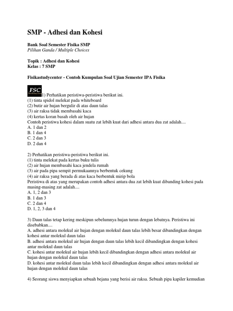 Contoh kohesi dan adhesi. Mari kita bahas selengkapnya. Pengertian rumus akibat dan contoh adalah kohesi adalah gaya tarik menarik antara partikel partikel yang sejenis. Pengertian gaya kapiler atau kapilaritas gaya kapiler atau kapilaritas adalah gejala meresapnya zat cair melalui celah celah sempit atau pipa rambut. Contoh air yang menempel di kaca. Contoh peristiwa gaya kohesi dan adhesi gaya dapat kita temui dalam berbagai macam peristiwa dalam kehidupan sehari hari. Kohesi dan adhesi.