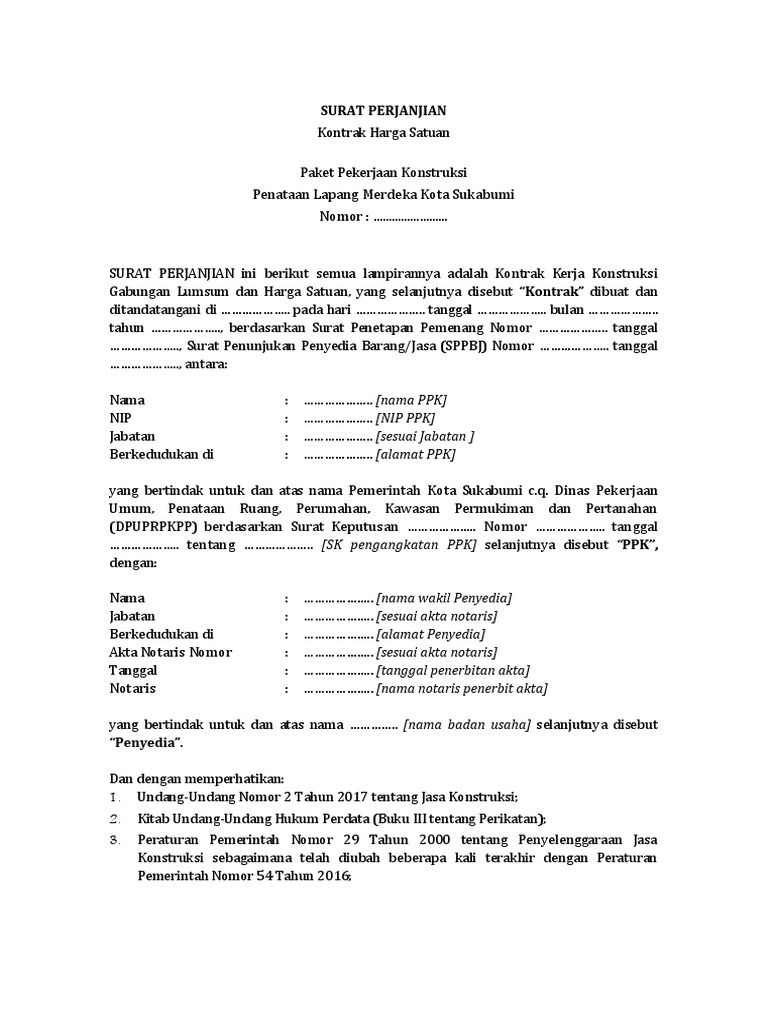Contoh kontrak harga satuan. Apabila tetap menggunakan kontrak lumpum maka akan terjadi kelebihan pembayaran 250. Jadi tegas dan jelas yang dimaksud nilai kontrak adalah total kontrak bukan harga satuan. Sebagai contoh pengecoran beton dengan harga satuan us 60 per m 3 sudah terpasang. Mengingat lump sum meliputi satu harga pastitetap untuk semua atau beberapa bagian pekerjaan harga satuan hanya mengatur harga satuan. Pembayaran dilakukan berdasarkan pengukuran hasil pekerjaan yang dituangkan dalam sertifikat hasil pengukuran contoh monthly certificate. Mau tanya pak kontrak harga satuan apakah boleh diadendum dan kalau melebihi tanggal pelaksanaan apa boleh diperlakukan denda reply delete.