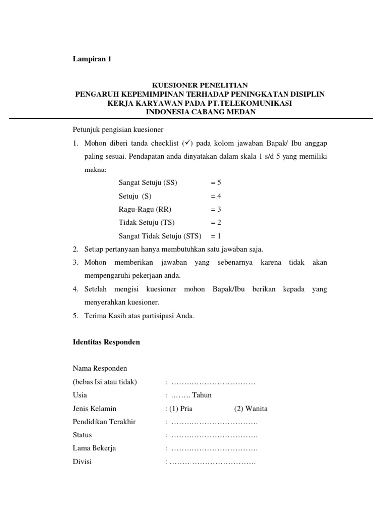 Kepemimpinan dan budaya organisasi melalui kepuasan kerja terhadap kinerja karyawan pada cv. Kuesioner kinerja karyawan model chester i. Kuesioner kuisioner penelitian. Tp skor 1 tidak pernah. Ss skor 5 sangat sering.