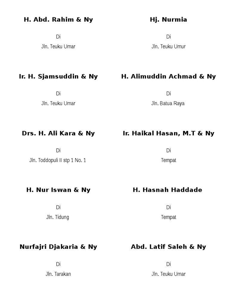 15 contoh surat undangan pernikahan paling lengkap pernikahan merupakan hal atau kegiatan yang sakral dalam kehidupan manusia. Dalam contoh ini saya akan membuat template label dengan nomor 103. Word dimana lebel undangan biasanya digunakan untuk mencetak nama yang di undang pada bagian depan. Kemudian klik preview result pada tab mailings untuk melihat nama nama undangan yang tadi dipersiapkan. Sekaligus mengecek koneksi file excel yang berisi daftar nama ke file word.