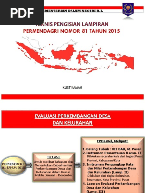 Dalam evaluasi mengacu pada pelaksanaan pemerintahan desa dalam 2 dua tahun terakhir yaitu tahun 2016 dan tahun 2017. Pada tanggal 30 desember 2015 menteri dalam negeri tjahjo kumolo menetapkan peraturan menteri dalam negeri republik indonesia nomor 81 tahun 2015 tentang evaluasi perkembangan desa dan kelurahan. Nama nama tim epdeskel pengumpulan data c. Tim evaluasi terdiri dari. Permendagri nomor 81 tahun 2015 tentang evaluasi perkembangan desa dan kelurahan mulai berlaku setelah diundangkan oleh widodo ekatjahjana dirjen peraturan perundang undangan kemenkumham ri pada. Penyambutan tim evaluasi tingkat provinsi.