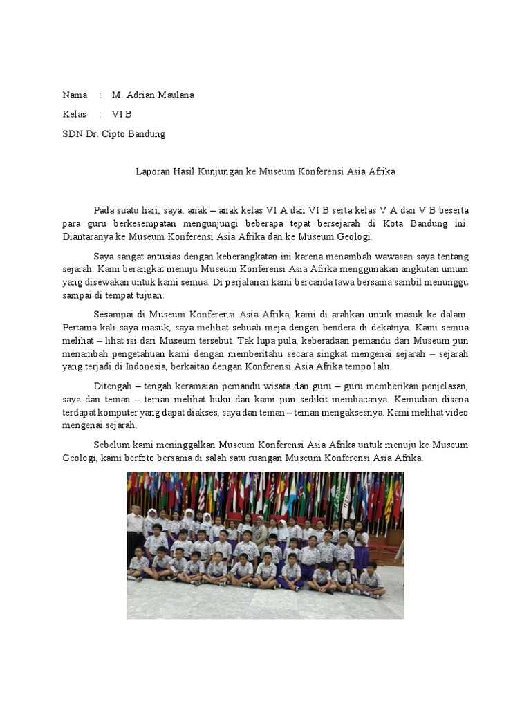 Laporan kunjungan ke gedung arca sumatera utara kata pengantar. Mineral dan sebagainya berdasarkan kunjungan edukatif ke museum geologi bandung yang dilaksanakan pada tanggal 26 november 2013. Contoh laporan kunjungan museum laporan kunjungan museum dan studi lapangan kelas x di sangiran dan. Laporan kunjungan dan wisata sejarah ini dapat menjadi acuan bagi penelitian dan penulisan laporan kunjungan dan wisata sejarah untuk selanjutnya. Laporan hasil kunjungan ke museum geologi bandung. Laporan kunjungan ke museum sribaduga bandung saya buat sesuai tugas yang diberikan oleh dra.