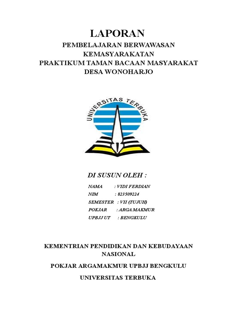 Laporan ini dibuat sebagai salah satu syarat untuk memenuhi mata kuliah pembelajaran berwawasan kemasyarakatan program s1 pgsd universitas terbuka upbjj semarang. Laporan pelaksanaan pembelajaran. Ucapan terima kasih kepada dosen pembimbing bapak eddy noviana m. Sehingga terselesaikan laporan tentang kegiatan praktek pembinaan program kepemudaan membuat tempe di sumber asri desa merambung kecamatan tanjungraja kabupaten lampung utara. Pdyang telah menugaskan membuat laporan ini kepada kepala desa bungbulang bapak fiki ramdaniseluruh warga binaan yang telah bersedia untuk mengikuti kegiatan pembinaan inidan juga keluarga penulis yang. 081 331 022 555 3.