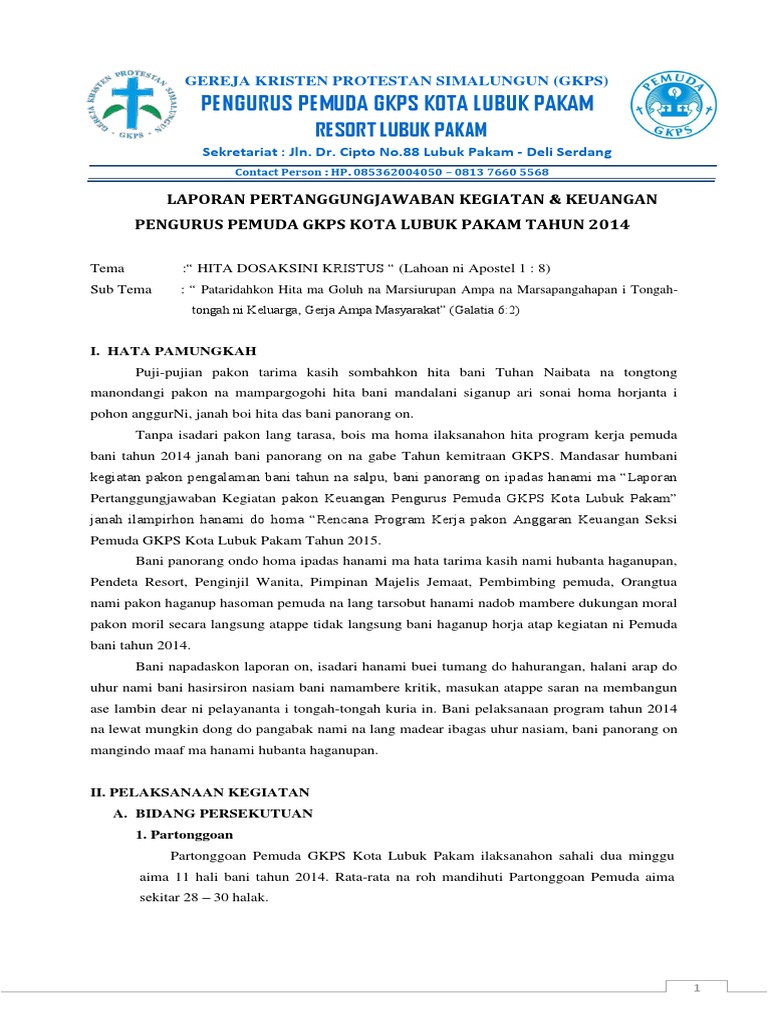 Cukup sekian pembahasan tentang contoh laporan pertanggungjawaban lpj kegiatan terbaik jika ada hal yang ditanya ataupun kritik dan saran silahkan isi di kolom komentar. Keputusan rjmt 2013 pelaksanaan keputusan keputusan sidang sinode gereja kristen sulawesi tengah. Contoh laporan pertanggung jawaban organisasi. Format lpj kegiatan â document. Contoh laporan pertanggungjawaban kegiatan rekoleksi dan re organisasi pa ps popular posts putra altar putri sakristi nganjuk gereja katolik santo paulus nganjuk jl. Atas perhatian dan kerja sama yang baik kami sampaikan ucapan terima kasih.
