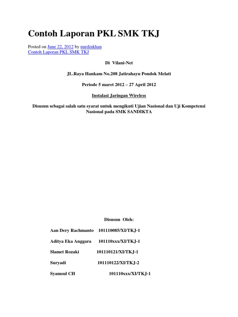 Adapun kaidah penulisan contoh laporan pkl smk jurusan tkj antara lain adalah menggunaan kata pengantar yang baik dan benar melampirkan daftar isi melampirkan isi pkl atau menjabarkan kegiatan kegiatan yang. Berikut ini adalah contoh format laporan yang berasal dari lokasi magang di tempat pengelolaan pajak daerah dan pengarsipan surat pada dinas pendapatan pengelolaan keuangan dan aset daerah. Contoh laporan prakerin buat kalian yang duduk di bangku sekolah menengah kejuruan pasti akan mengalami yang namanya praktik kerja industri prakerin atau biasa juga disebut praktik kerja lapangan pkl. Kita hanya perlu mengikuti beberapa kaidah penyusunan laporan. Pada intinya sama saja prakerin dan pkl hanya orang orang saja yang terkadang beda dalam menyebutnya. Contoh laporan prakerin smk jurusan akuntasi.