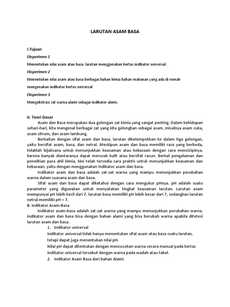 Laporan Praktikum Kimia Asam Basa Pdf Document