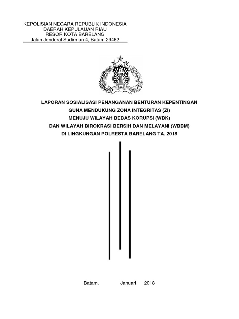 Contoh laporan zona integritas. Contoh format laporan rencana kerja zona integritas halaman judul kata pengantar daftar isi bab i pendahuluan 1. Pedoman pembangunan zona integritas menuju wilayah bebas dari korupsi wbk dan wilayah birokrasi bersih dan melayani wbbm. Pakta integritas pengadilan negeri mempawah tahun 2019. Ptsp kota aceh created date. Pembangunan zona integritas 1 rencana pembangunan zona integritas adalah program kegiatan dan inovasi yang akan dilaksanakan dalam melakukan perubahan yang berisi tentang target waktu dan hasil yang ingin dicapai disesuaikan dengan kondisi dan karakteristik satker di wilayah masing masing. Peraturan presiden nomor 81 tahun 2010.