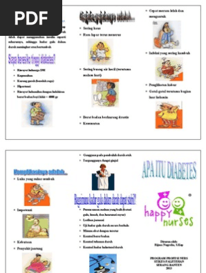 Gambar leaflet diabetes melitus. Leaflet diabetes melitus asuhan keperawatan kesehatan. Rsud tidar magelang definisi dm atau kencing manis adalah suatu penyakit yang disebabkan oleh karena peningkatan kadar gula dalam darah hiperglikemi akibat kekurangan hormon insulin baik absolut maupun relatif. Setelah dilakukan penyuluhan pasien dapat menjelaskan tentang pengertian diabetes melitus gejala gejala diabetes melitus komplikasi diabetes melitus menjawab salam mendengarkan memperhatikan 5 menit ceramah leaflet. Terkait dengan faktor pola makan yang tidak sehat obesitas dan kurangnya olahraga. Sel sel tubuh menjadi resisten terhadap insulin dan tidak bisa.