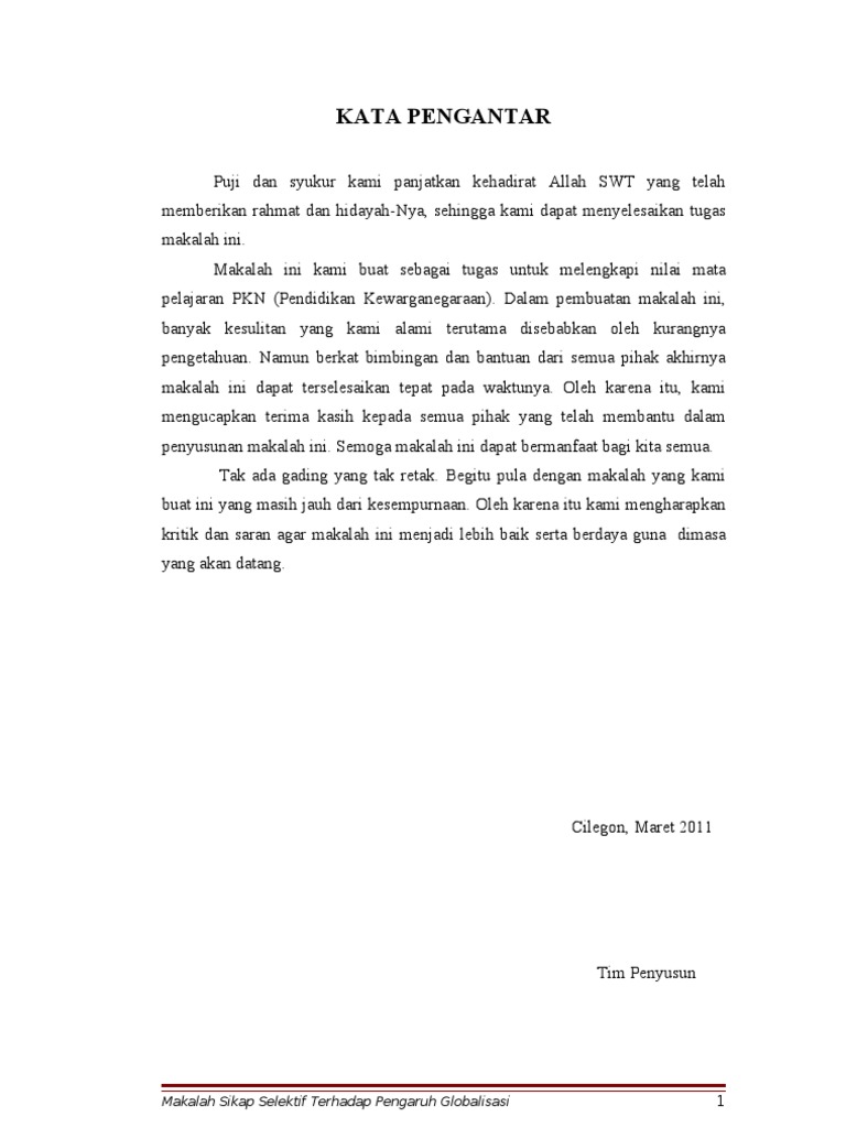 Makalah tentang globalisasi disusun. Demikianlah makalah tentang dampak globalisasi dalam berbagai bidang kehidupan. Makalah ini merupakan tugas mata kuliah ilmu sosial dan budaya dasar. Maka dari itu kami mohon kritik dan saran untuk kesempurnaan makalah ini. Oleh karena itu penulis membuka ruang kepada pembaca yang ingin memberikan kritik dan saran demi perbaikan makalah ini dikemudian hari. Segala puji dan syukur kami panjatkan kekhadirat allah swt tuhan yang telah memberikan beragam nikmat nya kepada kita semua sehingga alhamdulillah kami diberikan kelancaran dalam membuat makalah yang berjudul proses aspek dan dampak globalisasi dalam kehidupan berbangsa dan bernegarasalawat dan salam semoga selamanya tercurah dan terlimpah kepada nabi muhammad saw keluarganya para.