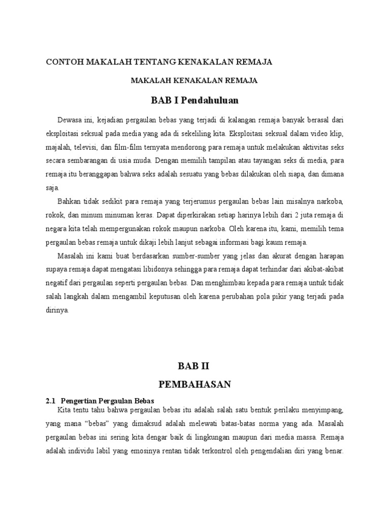 Contoh makalah tentang pergaulan bebas. Makalah tentang pergaulan bebas by faisal 0746 12 comments. Dalam penyuluhan tersebut dalam dijelaskan kepada kaula muda khususnya remaja dan mahasiswa tentang sebab akibat dari pergaulan bebas. Sedangkan pergaulan yang negatif itu lebih mengarah ke pergaulan bebas. Tidak ada lagi pertimbangan tentang sebab dan akibat. Contoh makalah pergaulan bebas remaja. Bertutur kata yang seenaknya dalam mengajar atau mempunyai pergaulan bebas di luar sekolah akan mudah di contoh oleh murid.