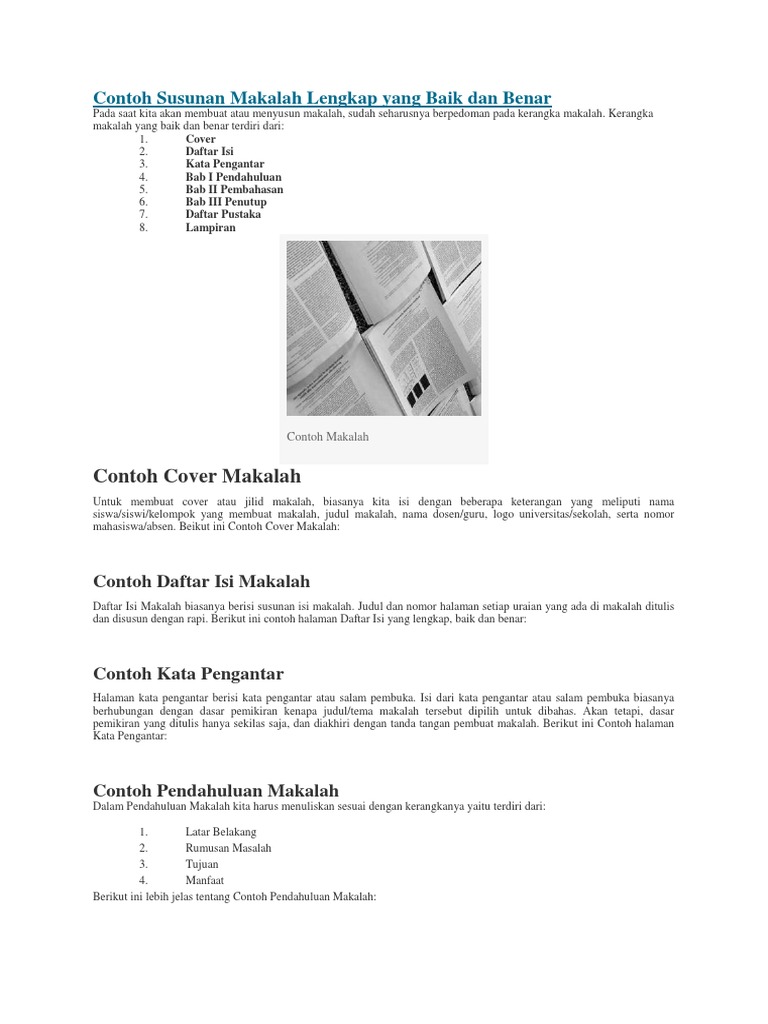 Berbeda dengan penulisan untuk kalangan dalam negeri indonesia harus menggunakan bahasa indonesia yang baik dan benar sesuai dengan eyd yang berlaku saat ini. Sebelum dibahas contoh daftar isi makalah ini maka tentunya akan lebih baik apabila kita mengetahui apakah pengertian dari daftar isi dan makalah itu. Bagi yang baru masuk sma atau di perkuliahan pasti bingung dengan cara membuat makalah yang baik dan benar. Karena dalam artikel ini akan dibahas secara tuntas mengenai cara membuat makalah yang baik dan. Atau malah bingung bagaimana cara penulisan makalah yang baik dan benar. Artikel ini akan membahas tentang contoh makalah yang benar.