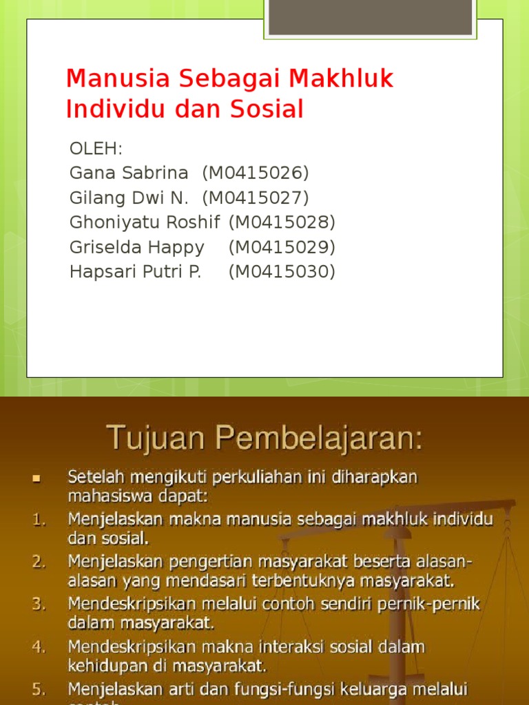Manusia sebagai makhluk sosial pengertian individu dan contoh manusia atau orang dapat diartikan berbeda dalam hal istilah biologi spiritual dan budaya atau campuransecara biologis manusia diklasifikasikan sebagai homo sapiens sebuah spesies primata dari mamalia yang mencakup otak sangat mampu. Jika unsur tersebut sudah tidak menyatu lagi maka seseorang tidak disebut sebagai individu.