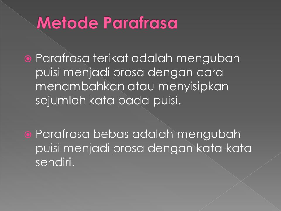 Sehingga kalimat kalimat puisi mudah dipahami seluruh kata dalam puisi masih tetap digunakan dalam parafrase tersebut. Atau merasa ingin menulis sesuatu yang lebih indah selain puisi.