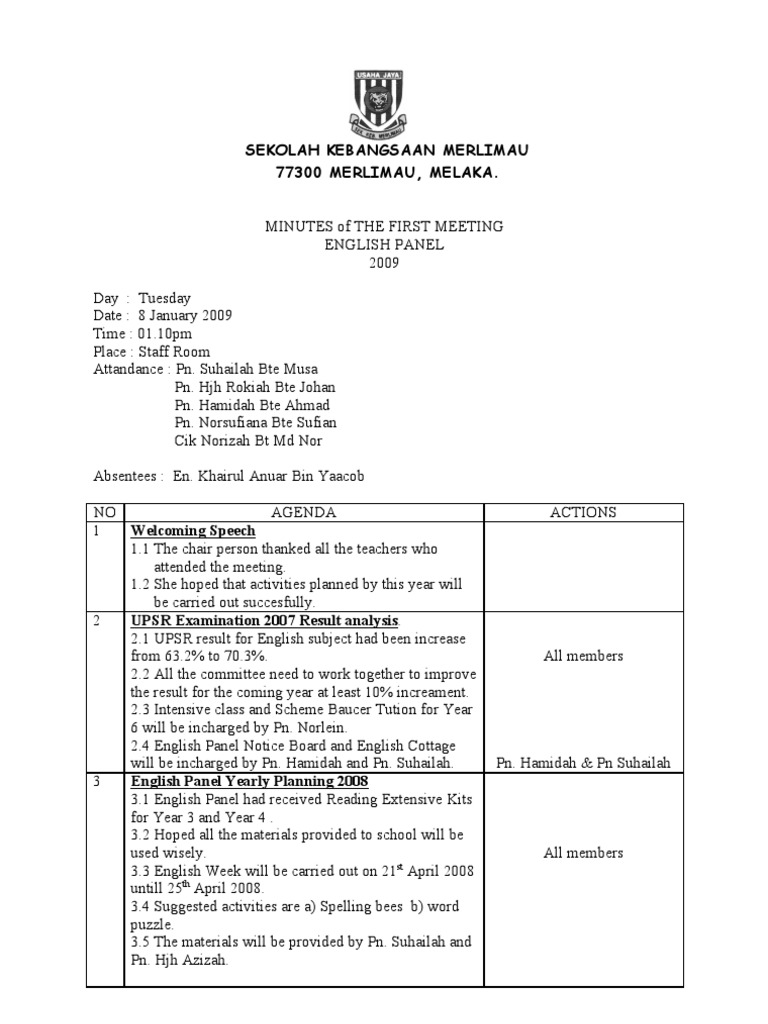 Contoh minute of meeting. Membuat minutes of meeting aka notulensi rapat march 24 2015 march 24 2015 sugeng wibowo howto minutes of meeting mom atau notulensi rapat adalah dokumen yang cukup vital dibutuhkan terutama untuk rapat yang di dalamnya membahas kesepakatan beberapa pihak ataupun keputusan keputusan penting dan strategis. Keeping meeting minutes just got a lot easier. This simple meeting minutes template has a straightforward format so its easy to share what topics were discussed. Evaluasi penjanjian kerjasama profit sharing dan addendum. Every meeting needs a well written minute to give you a brief description of what you have discussed in the meeting. Minit mesyuarat atau minutes of meeting mom adalah penting dalam sesebuah mesyuarat kerana ia akan menjadi panduan dan rujukan buat pekerja dan orang yang hadir atau tidak untuk mengetahui hasil keputusan sesuatu mesyuarat.
