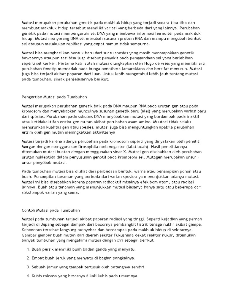 Mutasi gen dapat terjadi melalui berbagai cara diantaranya. Contoh mutasi pada tumbuhan.