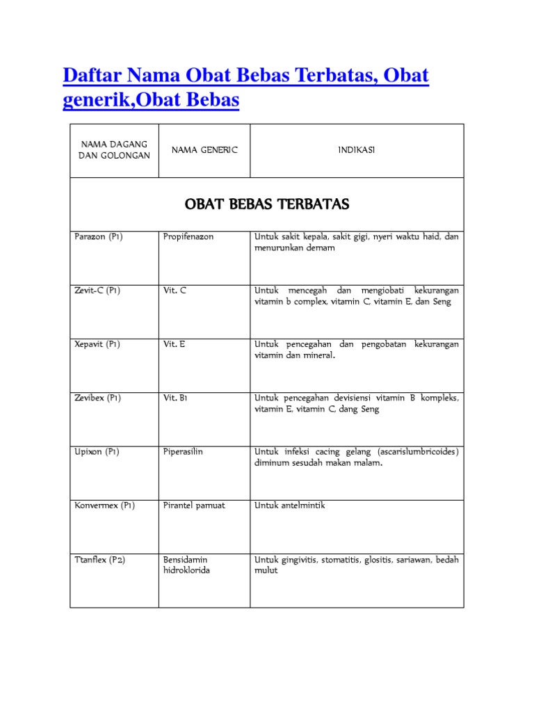 Oleh karena dalam komposisi obat terdapat zatbahan yang relatif toksik jika digunakan dalam jumlah berlebih maka pada wadah atau kemasan harus tercantum tanda peringatan p1 p6. Obat bebas terbatas pada kemasanya diberi tanda berupa lingkaran biru tua dengan garis tepi hitam. Obat bebas terbatas adalah obat yang sebenarnya termasuk obat keras tetapi masih dapat dijual atau dibeli bebas tanpa resep dokter dan disertai dengan tanda peringatan. Untuk mencegah dan mengiobati kekurangan vitamin b complex vitamin c vitamin e dan seng. Contoh obat bebas terbatas p1 p6 macam macam obat keras adapun daftar obat keras yang dibedakan menurut golongan dari p1 hingga p6 antara lain adalah. Memiliki nama dagang natrium lavil dengan nama generik sulfoasetat yang memiliki fungsi sebagai obat untuk mengatasi kesulitan dalam buang air besar seperti sembelit.