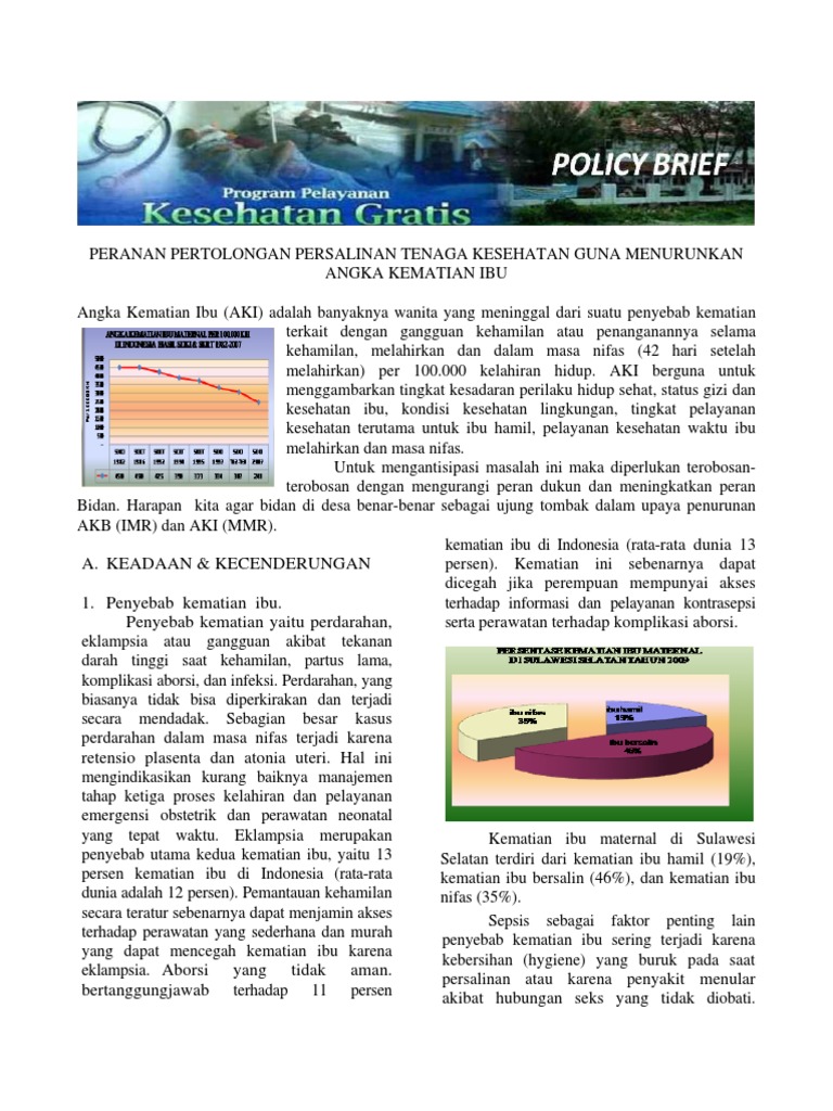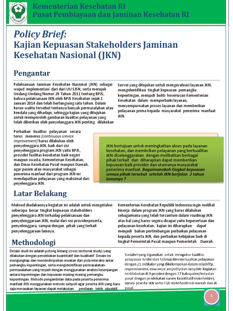 Peningkatan mutu klinis pelayanan kesehatan ibu dan bayi di rumah sakit rukmono siswishanto dan hanevi djasri ditujukan ke pengambil kebijakan di. Didukung oleh rekomendasi yang kuat 3 besarnya manfaat yang didapati manfaat non kesehatan perlu juga dilihat contoh manfaat konrasepsi tidak hanya mencegah kehamilan tapi juga yang lainnya. 31 oktober 2016 dilihat. Pmts yang terintegrasi ke dalam sistem kesehatan nasional. Policy brief adalah sebuah dokumen yang menguraikan dasar rasional dalam pemilihan sebuah alternatif kebijakan khusus atau rangkaian tindakan dalam sebuah kebijakan saat ini. Forum mutu pelayanan kesehatan 2013 indonesian health quality network jakarta 19 november 2013.